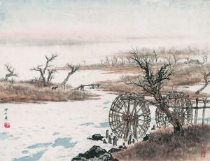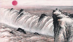 关山月(1912年10月25日—2000年7月3日),原名关泽霈,广东阳江人,中共党员,中国当代国画艺术大师 、书法家、美术教育家,其主要绘画作品有《江山如此多娇》《春到南粤》《绿色长城》《俏也不争春》《碧浪涌南天》《长河颂》《轻舟已过万重山》 《新开发的公路》《榕荫下》《俏不争春》《祁连牧居》《秋溪放筏》等;出版有《关山月画集》《关山月作品选集》《乡土情》《山河颂》《傅抱石、关山月东北写生集》等专集著作。