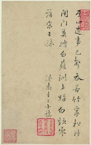 王士祯(1634年9月17日-1711年6月26日),原名王士禛,字子真,一字贻上,号阮亭,又号渔洋山人,世称王渔洋。山东新城(今山东桓台县)人。清初诗人、文学家、诗词理论家。 王士祯在实践“神韵说”,取得卓著诗文成果的同时,还能突破正统文坛和文人偏见,重视和高度评价小说、戏曲、民歌等通俗文学、文体。他的主要成就在诗文创作与理论方面,但在小说、戏曲、民歌、书画、藏书、史论等方面所取得的成就亦不容忽视。